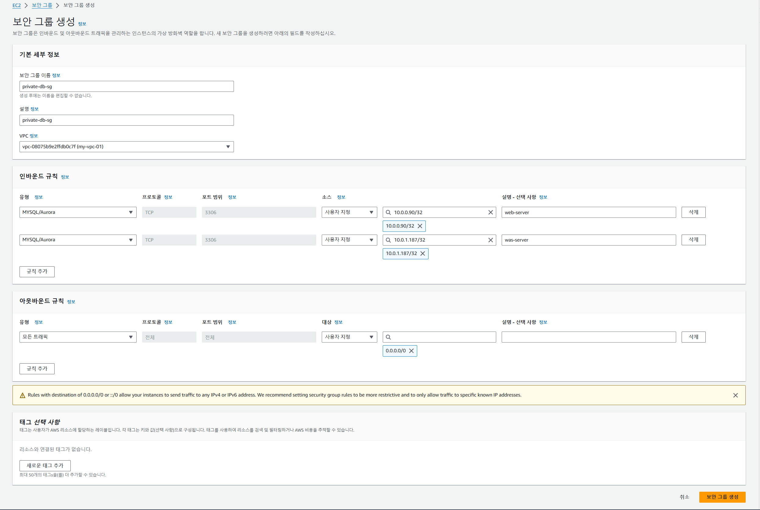 나의 경우 외부에서는 web-server를 통해, 내부에서는 was-server가 db를 이용할 것이기 때문에