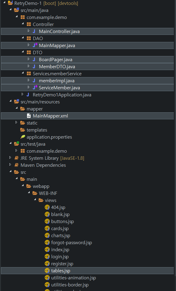 페이징을 하기위해 필요한 파일작성을 차근차근 프로젝트 상단부터 아래로 만들어 보자.