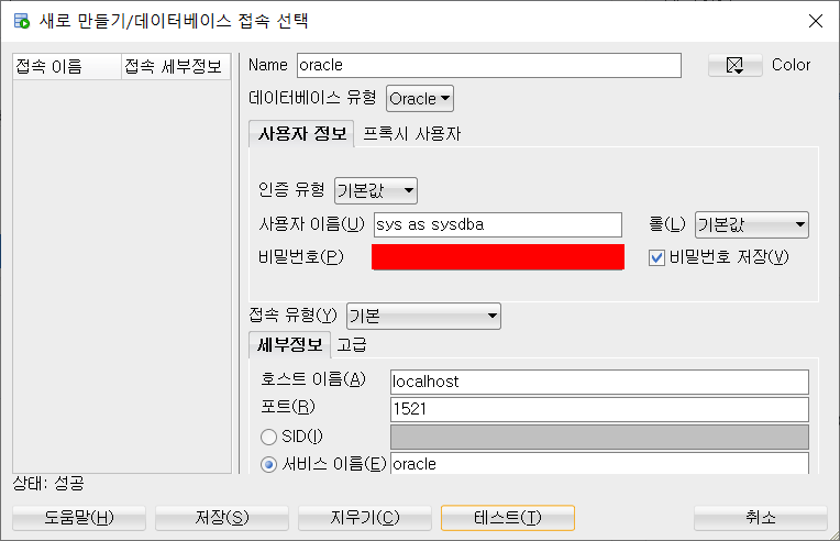 SqlDeveloper에 접속하면 연결되어 있는 데이터베이스 주소를 알 수 있다 이를 이용해 접속한다.