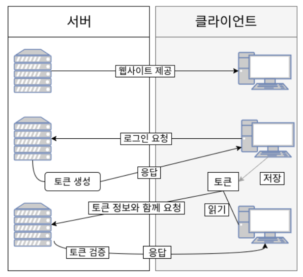 5. 클라이언트 측에서 전달받은 토큰을 저장해 두고, 서버에 요청을 할 때마다, 해당 토큰을 함께 6. 서버에 전달합니다.