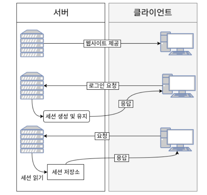서버는 클라이언트에게서 요청을 받을 때마다, 클라이언트의 상태를 계속해서 유지하고,