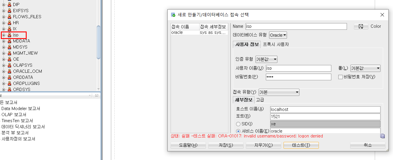 sql Developer에서 스키마를 만들고 바로 새 접속을 하니 없다고 나온다?