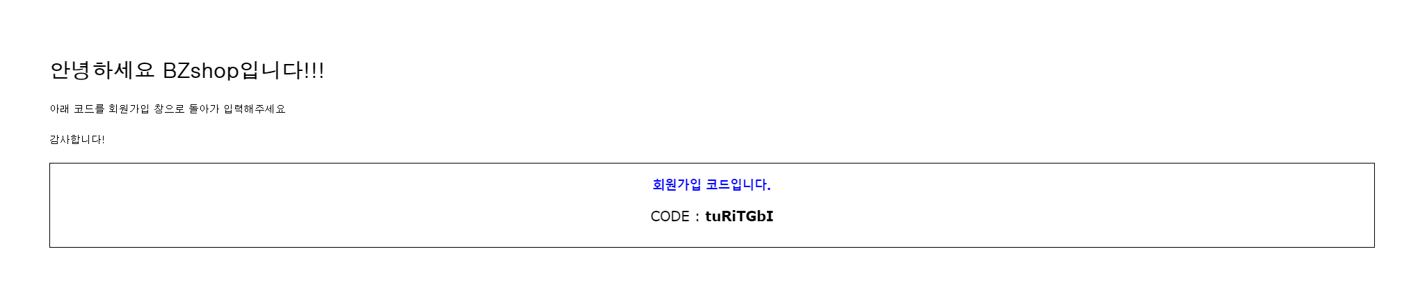 msgg+= "<p>아래 코드를 회원가입 창으로 돌아가 입력해주세요<p>";