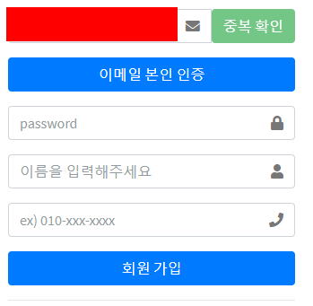 email로 아이디를 만들고 아이디 중복 확인 후
