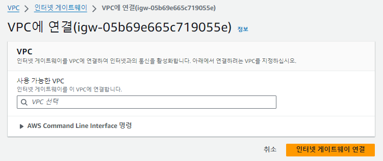 '인터넷 게이트웨이 생성' 클릭하면 생성된 후 상세 페이지로 이동되는데