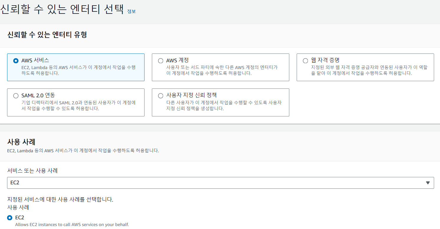 - S3연결할 EC2에 역할 배정